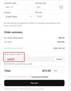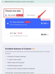 Yes! Coohom often releases promo codes that can be applied at checkout for extra savings. These codes are usually shared through newsletters, special campaigns, or affiliate sites. Be sure to check our page before you buy so you never miss a discount.