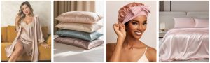 All SilkSilky products are made from ultra-luxurious 100% Pure Mulberry Silk (Except for some loungewear products, they are made of silk knitting, These products still contain enough mulberry silk, please read the product description).